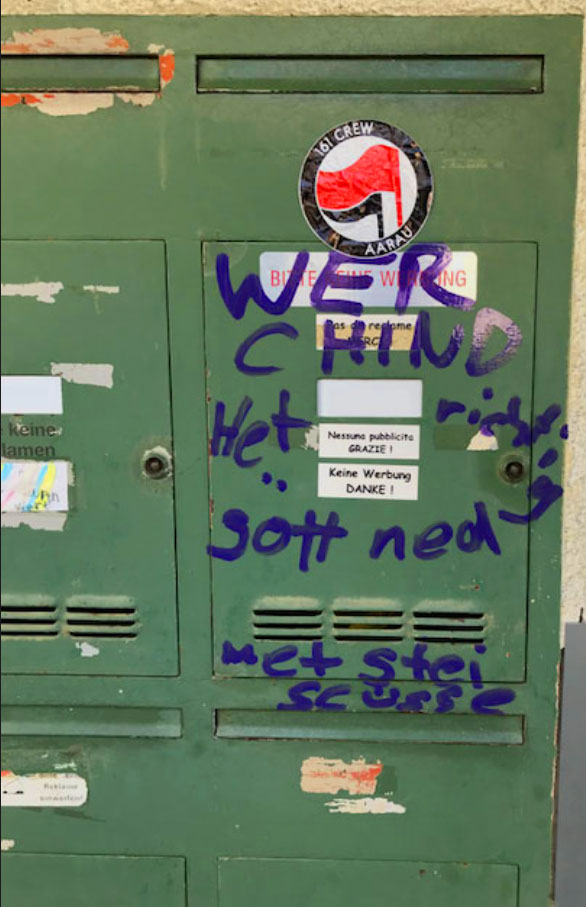 Hass und Hetze mit «Nazi-Methode»: Linksextreme Anhänger der «Antifa Aarau» betreiben mit Falschbehauptungen im Internet und mit Flugblatt-Aktionen Rufmord und «Doxing» gegen ein behindertes, jüdisches Paar in Aarau.